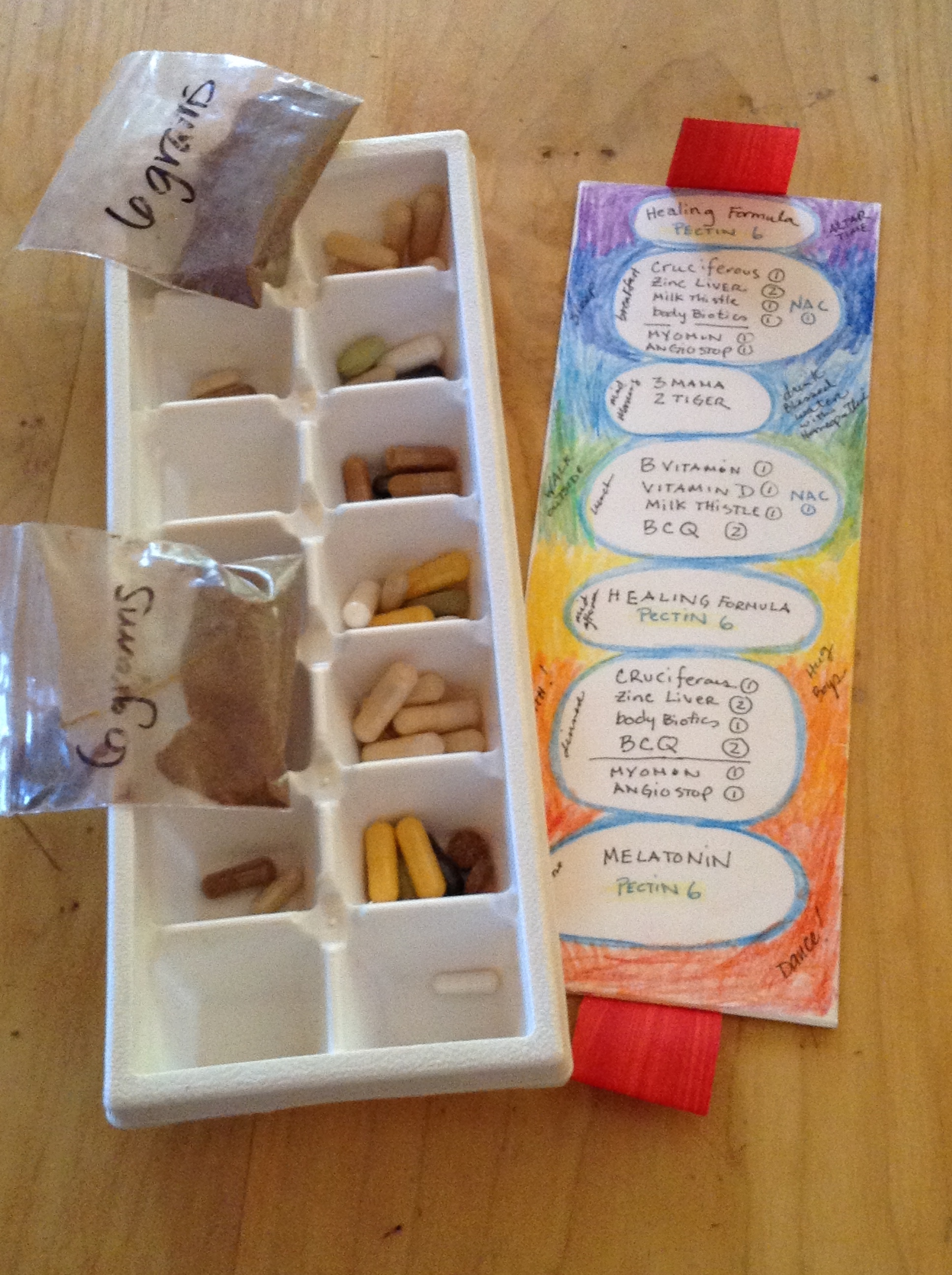 I am feeling good about my chances of living a long life post treatments without reoccurrence – and reassured by the actions I am taking with the help of my complementary medicine team. Even though I have a crazy number of pills (43!!!) to take every day – plus drinking my little espresso cups of what we affectionately call swamp tea. The number of supplements will be way less crazy after surgery.