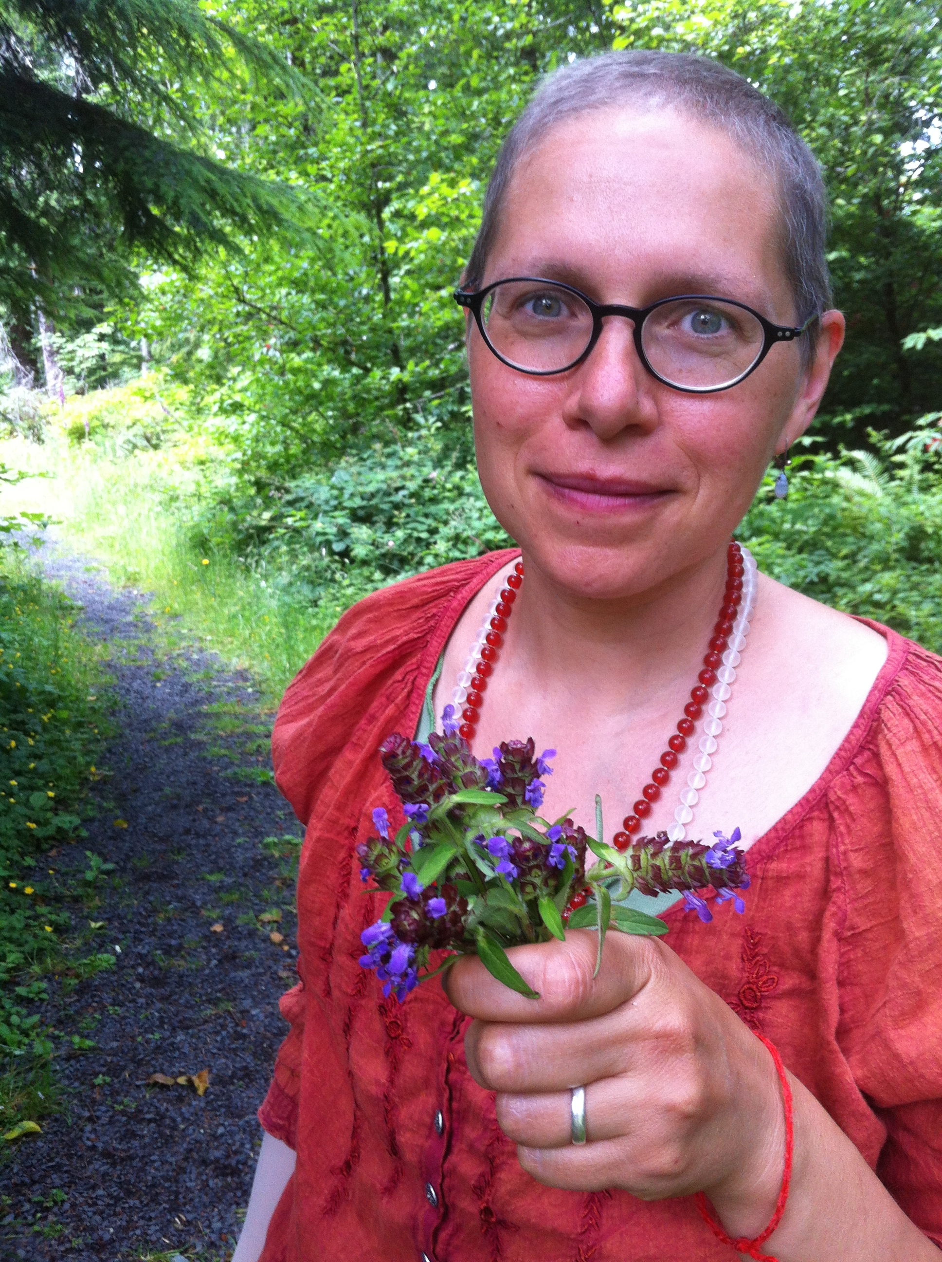 I know that unless the heat gets tons worse, I hope to weather it without taking additional pharmaceuticals. In my ongoing obsession with learning herbal medicine I have been reading about natural things which may be of help.  Self Heal with her modest purple flowers is ostensibly a good remedy for hot flashes when taken as tea. It feels like I am seeing it everywhere this summer. While on a hike with the boys and their cousins last week I filled my apron pocket with enough to make tincture.  On a second adventure with Joe and Martin I got more to dry as tea.  Self Heal is a generous plant that grows in many places.  It is one in the category of plants that I believe like to “follow” us around, offering healing. Dandelions, plantain, yellow dock, chickweed, burdock and purple loosestrife are other examples. I like adding Self Heal to formulas, as a little encouragement for the body’s own self healing mechanisms.  I haven’t tried it yet for the hot flashes.