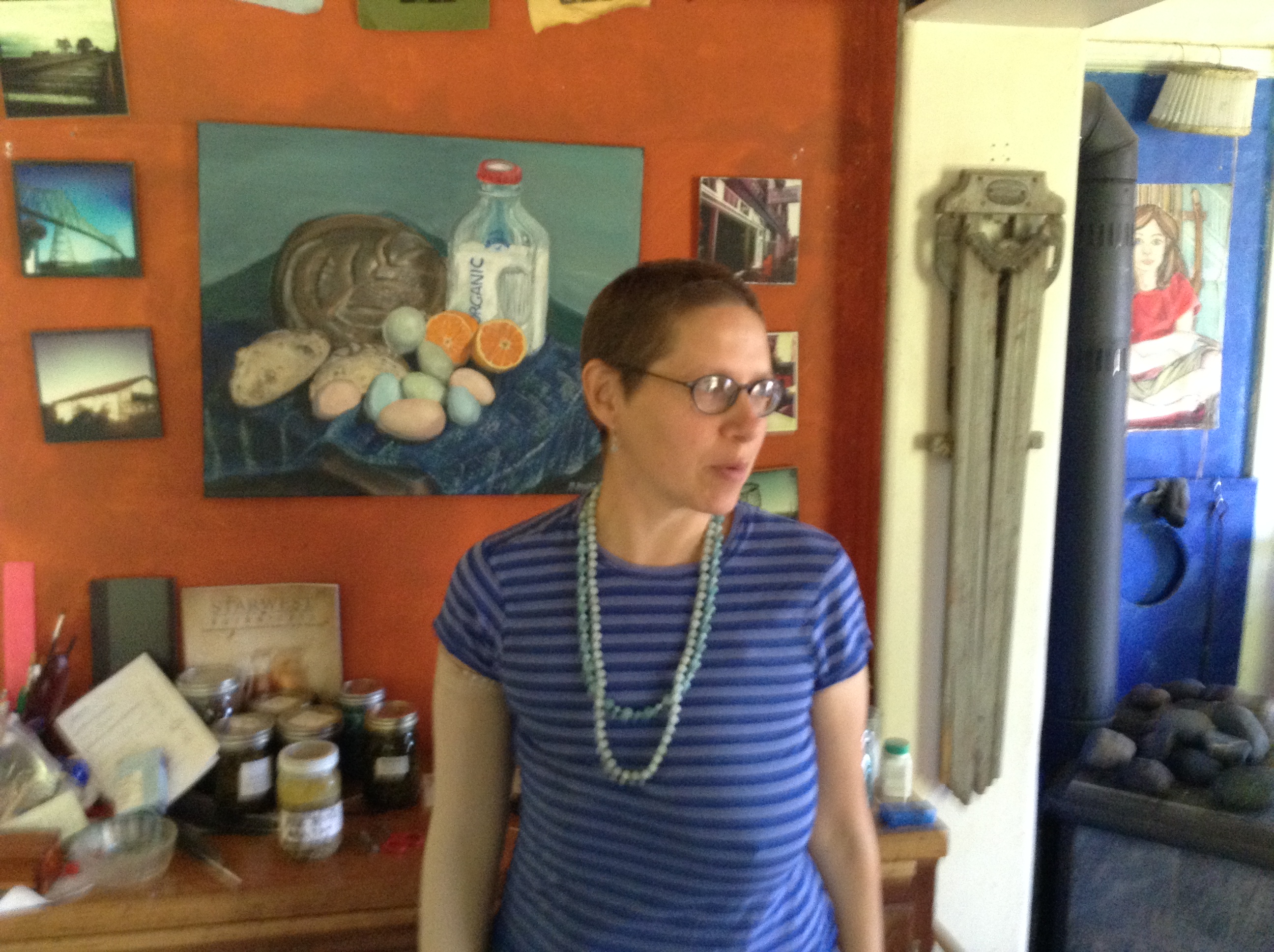 I have also been sewing a bit, and going thrift store shopping. It feels really good to be dressing to please myself, rather than dressing for practicality, which has been my main clothing objective for the past 10 years as a baker. The combination of summer heat, and hot flashes have made the idea of seeking out a prosthetic breast to wear quite unappealing. Which means that I have been going about town with nothing to disguise my one breasted status. I am not feeling disturbed by my body, but I have wondered if other people might feel uncomfortable when they see me. Which gave me the idea that perhaps there could be some means to camouflage my uniboob chest. So here is what the boys and I have come up with so far: