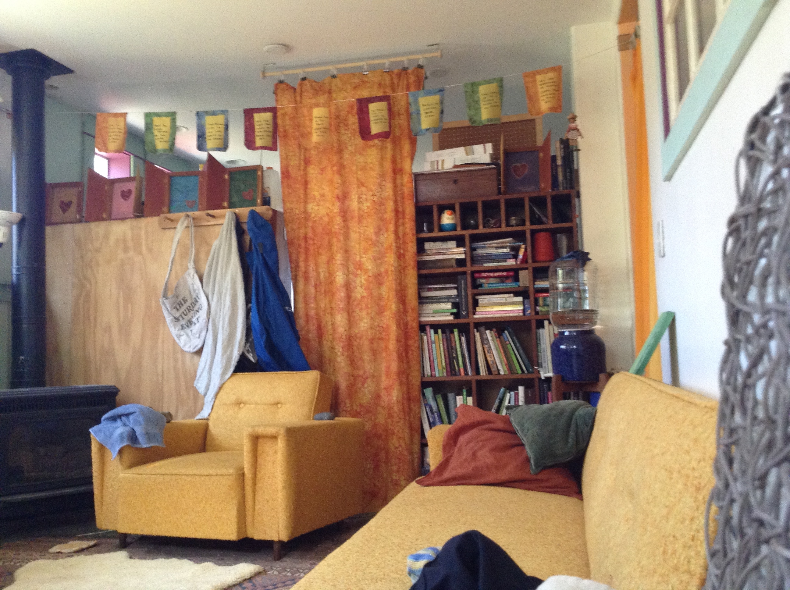 Fast forward to the year of our Lord 2015. The Bakery no longer consumes our life. We all brush our teeth regularly and even have sleep schedules that include enough sleep. During the past four years or so we have been working to bring our house back from the abyss.  We have had some moments of sparkling beauty.  I emptied all four closets and painted them white in 2011.  In 2012 My studio was  reclaimed from the chaos with the helpful intervention of my friend Betsy, who flew here from Colorado to wrestle the studio from the horror that had consumed it. Her fearlessness in the face of the monstrous task was truly inspiring.  We carved out what has become known as the Starlight Lounge, an oasis that has housed many guests and a few housemates- and became my healing bower during chemo treatments.