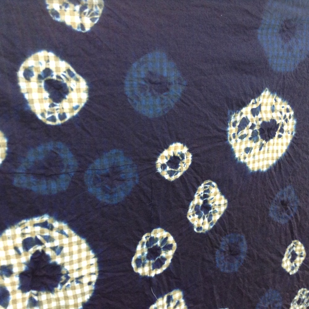A few resist dyed indigo hanker sniffs airing on the line.
