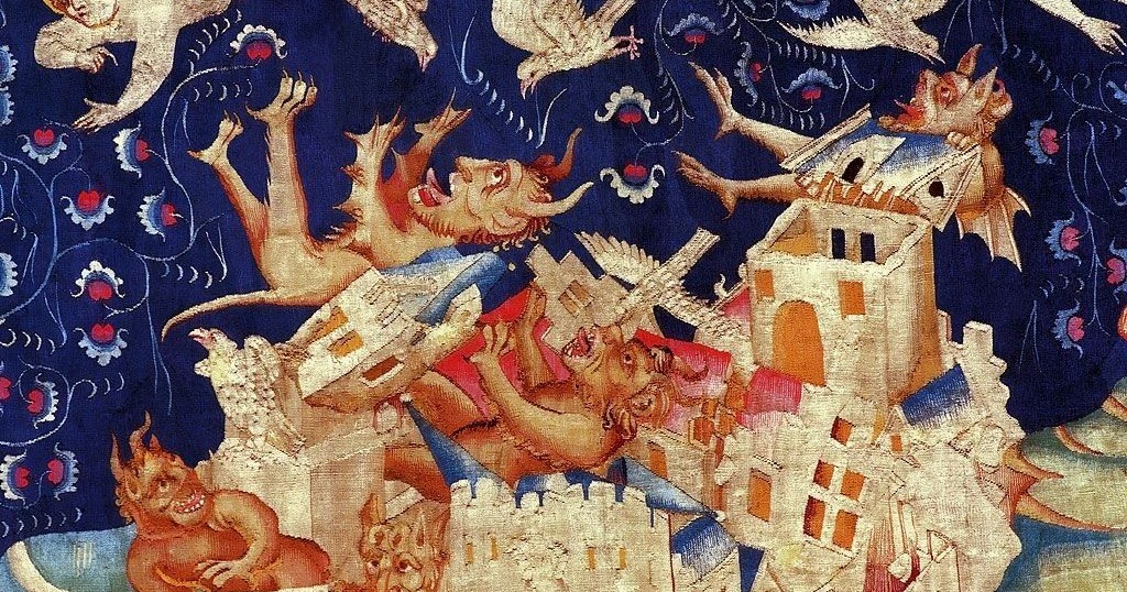 All images are from the enormous Angers Apocalypse Tapestry which was woven in the late 1300’s. It is proof that our fears and anxieties are not new to humanity, even when they do take new forms. I did an independent study for art history to study this tapestry while in college. I even dyed samples of wool using the historic dyes used in it. The tapestry is an amazing and unparalleled feat of woven artistry. I hope to someday see it in person.